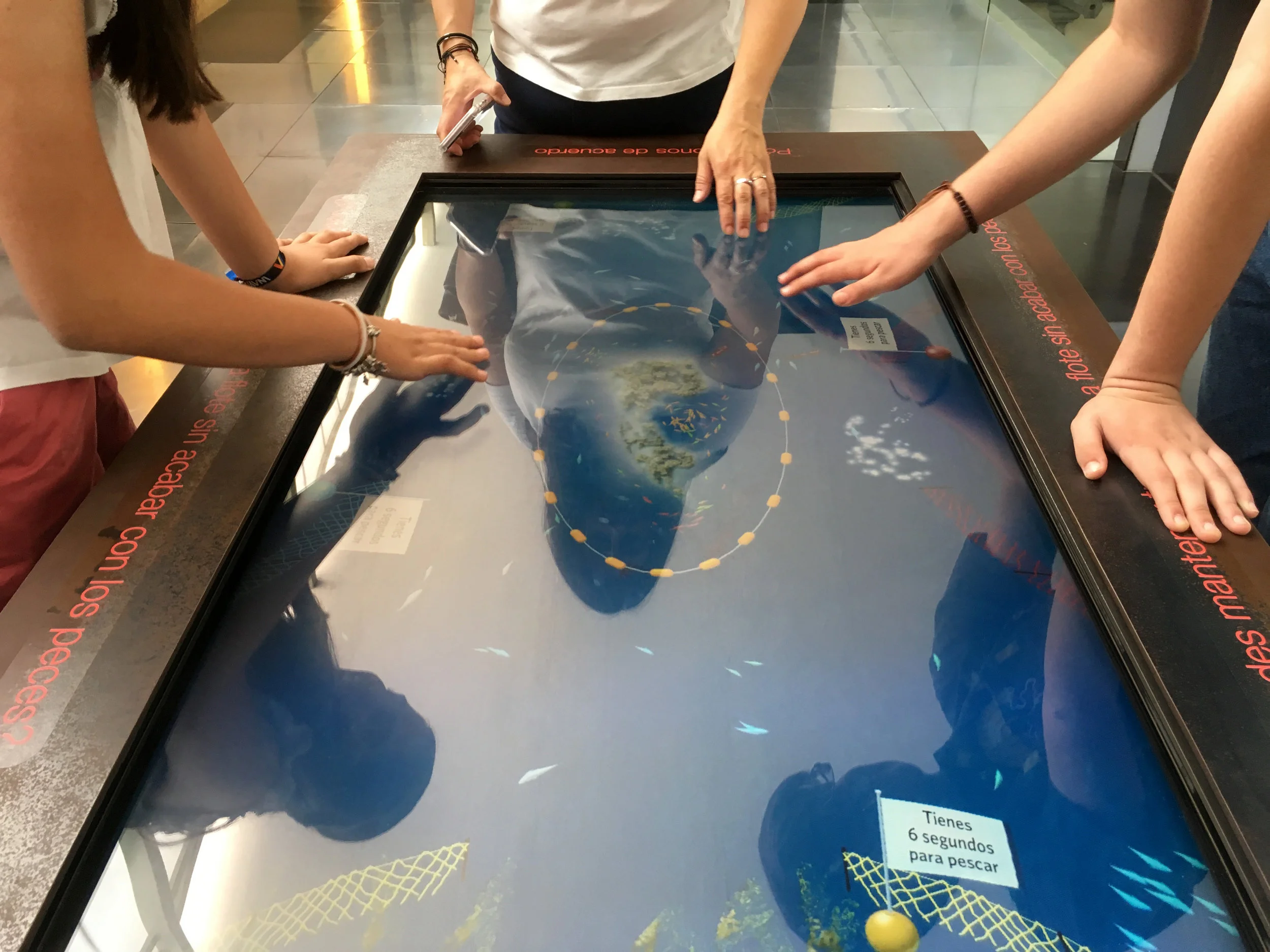 A very successful interactive was this table top adaptation of the “tragedy of the commons” concept using fishing. These three played (and discussed) for about 15 minutes!